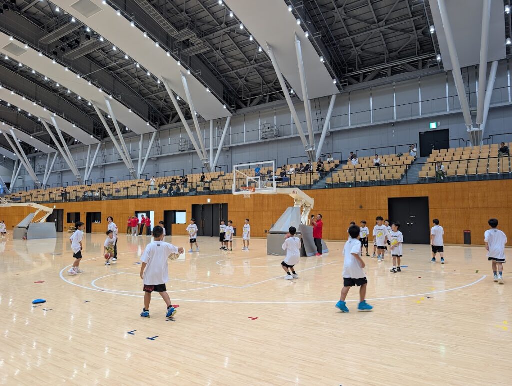 参加した子どもたちは、広いメインアリーナでのバスケットボール教室に緊張しつつも、すぐに笑顔を見せてくれました。